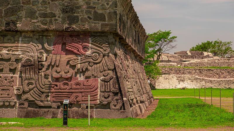La pirámide de Quetzalcóatl tiene una base de casi 18,2 hectáreas y su altura alcanza los 54 metros.