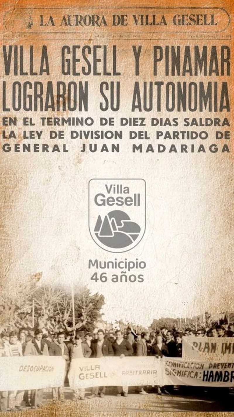 Pinamar,Villa Gesell y La Costa celebrarán este lunes 1 de julio el 46° aniversario de sus fundaciones, logrados a partir de la autonomía de los partidos de General Madariaga y General Lavalle.