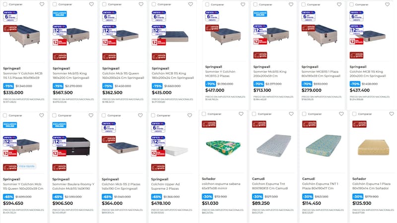 Dependiendo del banco al que pertenezca su tarjeta, pueden aprovechar de 3 a 12 cuotas sin interés. Además, hay marcas como Springwall, Soñador, kavanag, Camudi, Dielfe o Inmacol.