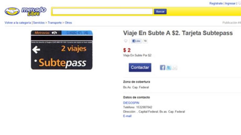 “¿No pudiste comprar viajes de subte antes del aumento? Compralos a $2 en vez de a $2.50”, así reza la publicación del portal de ventas Mercado Libre donde pueden encontrarse desde las ofertas más convenientes a las más disparatadas.