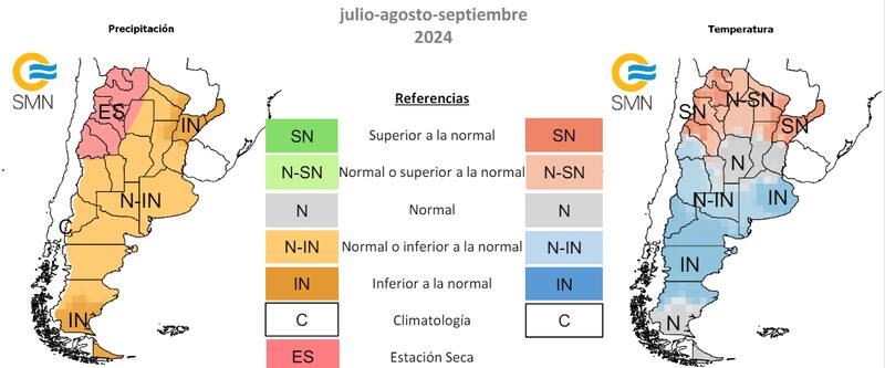 El Servicio Meteorológico Nacional(SMN) compartió, en sus canales oficiales, un informe con los datos del pronóstico climático estipulados para el período julio-septiembre de 2024.