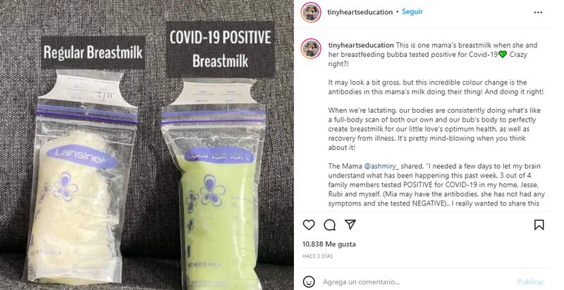 "Puede parecer un poco asqueroso, pero este increíble cambio de color es que los anticuerpos en la leche de esta mamá están haciendo lo suyo. ¡Y lo están haciendo bien!", señaló en redes sociales.