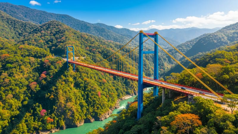 - Longitud total: 2.750 metros (casi 3 km), superando al Golden Gate (2.737 metros) y convirtiéndose en el puente colgante más largo de Latinoamérica.
