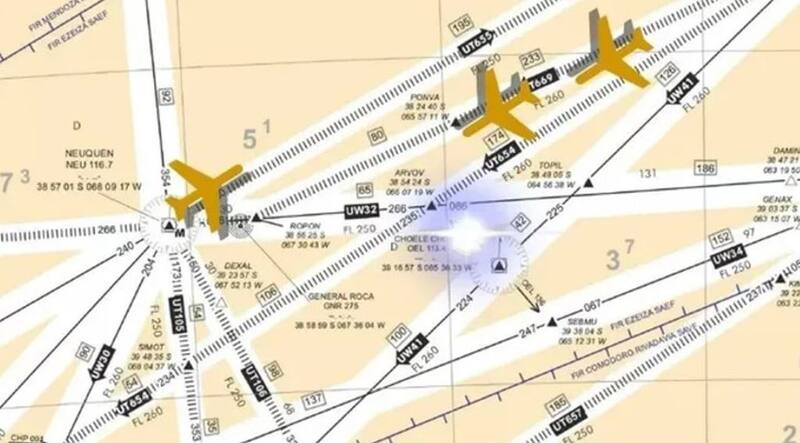 Según informaron los pilotos, el contacto con los OVNIS se dio cerca de la localidad de Choele Choel, Río Negro. Se trataba de dos vuelos que iban al sur del país y otro hacia Buenos Aires. Por un lado, el Boeing 737-76N, que cubría el servicio ARG 1932 y un Boeing 737-8SH que cumplía el vuelo regular ARG 1928.