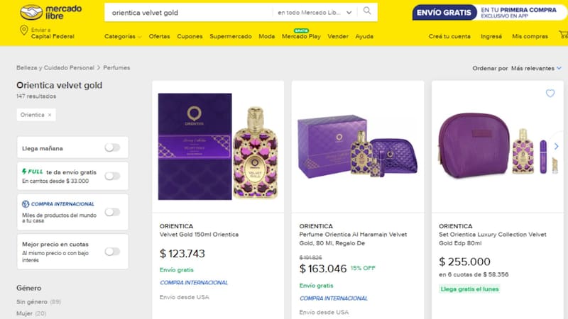 Con un precio que ronda los $ 82.000 y una presentación de 100 ml, Velvet Gold es uno de los perfumes orientales más vendidos en sitios como Mercado Libre.