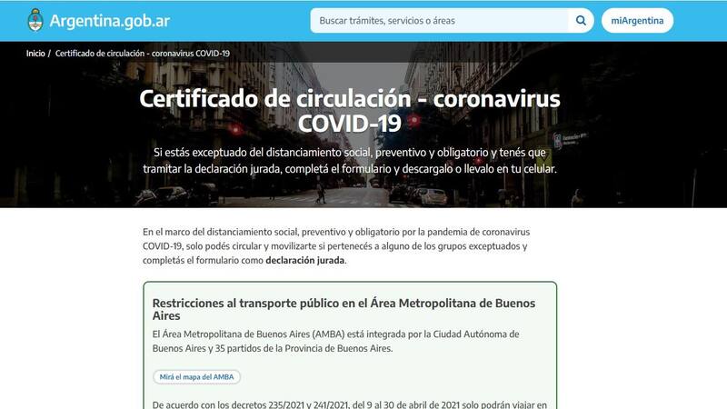 A través de la página web del Gobierno o de la app "Cuidar", se debe indicar la provincia de residencia y señalar la razón por la cual está "exceptuada" esa persona, ya sea porque "tenés que viajar a tu trabajo" o porque necesitás "Permisos especiales". Para utilizar el transporte público será necesario precisar el número de la tarjeta SUBE.
