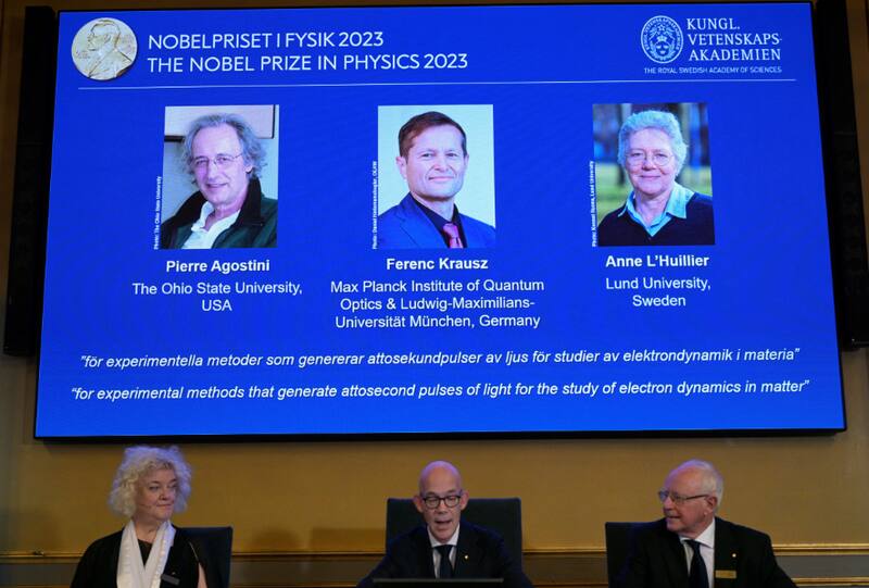 El francés Pierre Agostini, el austríaco-húngaro Ferenc Krausz y la franco sueca Anne L'Huillier fueron galardonados con el premio Nobel de Física por el desarrollo de métodos que permitieron mejorar el estudio de la dinámica de los electrones en los átomos.