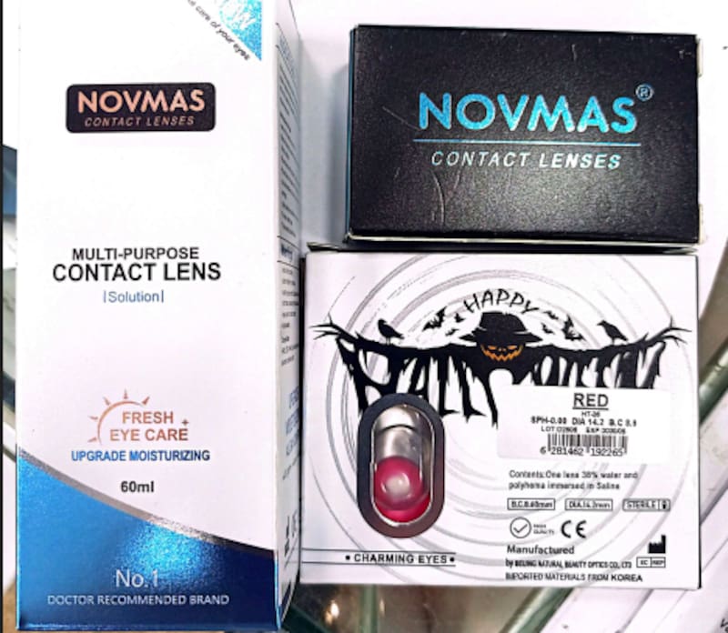 - NOVMAS contact Lenses – HAPPY HALLOWEEN, modelo RED HT‑26 – Manufactured by Beijin Natural Beauty Optics Co. Ltd.