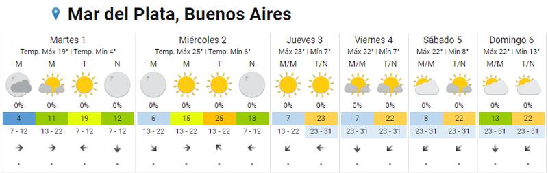 Pronóstico del tiempo: Clima hoy en Mar del Plata
