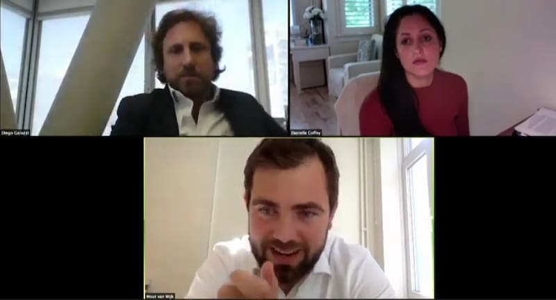 Diego Garazzi, Danielle Coffey, y Wout Van Wijk, durante el debate