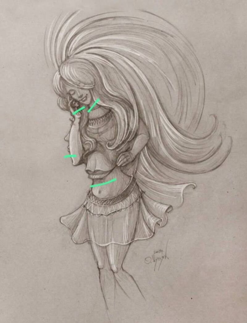 La cuarta es un poco más complicada y requiere mucha imaginación. Está oculta en el estómago de la mujer y toma forma cuando encuentras los labios. Aquí te mostramos la imagen para que te sea más fácil.
