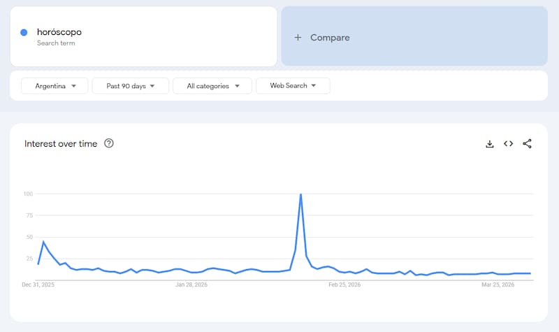 Consultar el horóscopo es un hábito que se mantiene vigente en las búsquedas de los argentinos. Más allá de las creencias personales, Google funciona como un canal rápido para sacarse dudas en torno a lo que la astrología tiene para decir sobre el futuro cercano o temas puntuales como el amor o el inicio de nuevos ciclos.