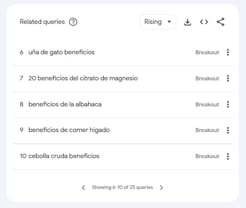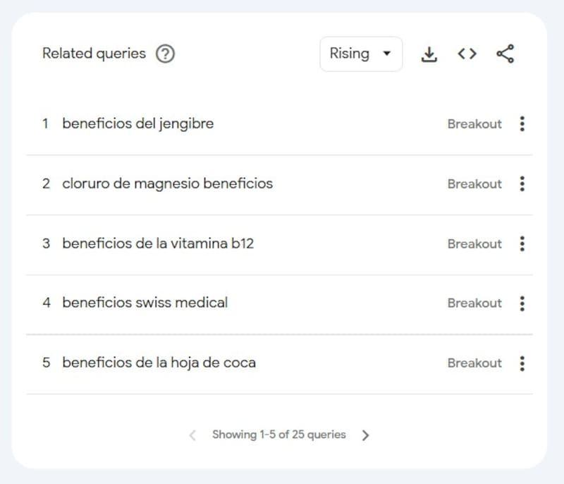 Google Trends marca ciertas consultas bajo la categoría de Breakout, un indicador de que el interés por un tema que creció de forma disruptiva (superior al 5.000%) en un período muy corto de tiempo.