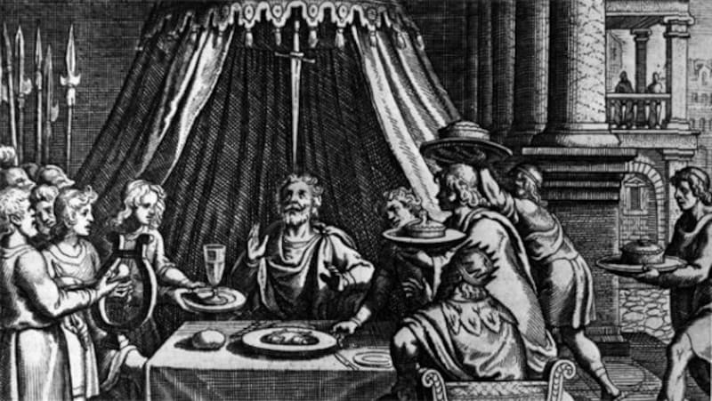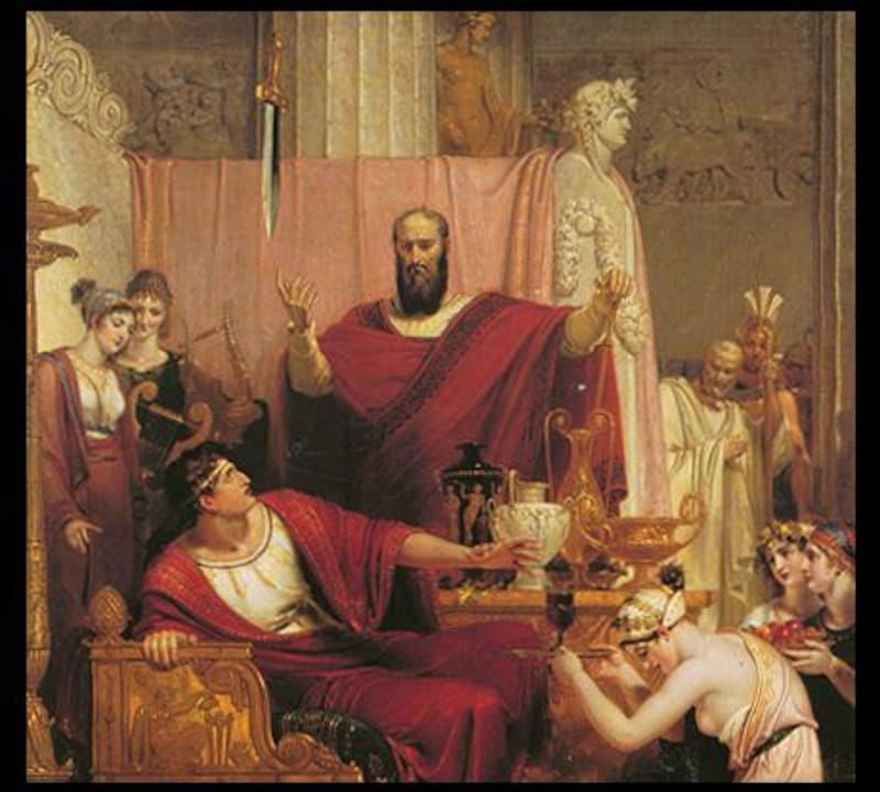 Damocles era un constante adulador que se pasaba sus días envidiando los lujos y comodidades del rey Dionisio I.