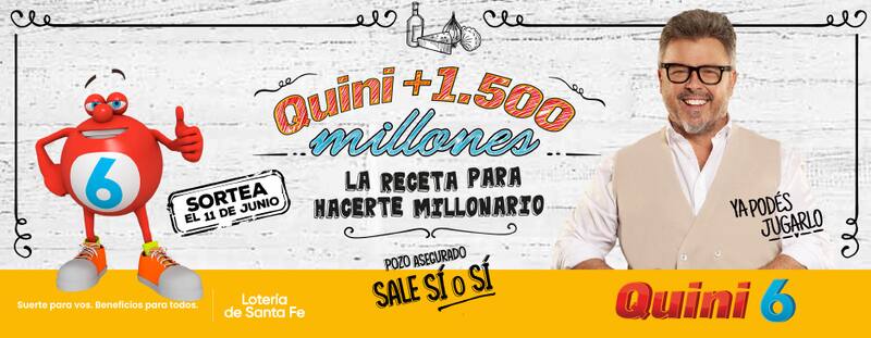 La Lotería de Santa Fe informó que el domingo 11 de junio habrá un sorteo especial: el Quini 6 de los $ 1500 millones, bajo la modalidad Siempre Sale.