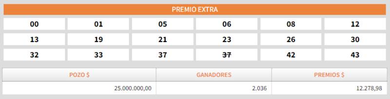 - Sorteo Extra: $ 25.000.000
