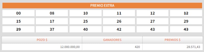 Tradicional La Segunda del Quini: 29 - 43 - 15 - 26 - 42 - 12