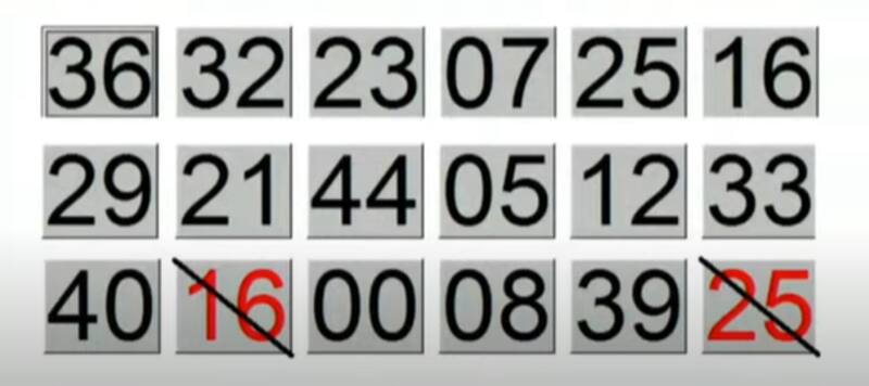 36 - 32 - 23 - 07 - 25 - 16