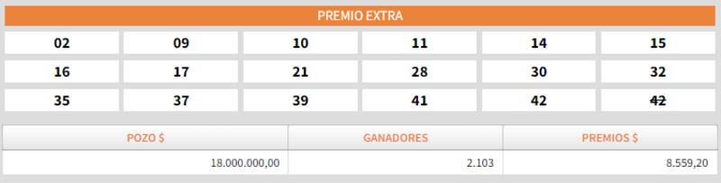 - Sorteo extra: $ 18.000.000