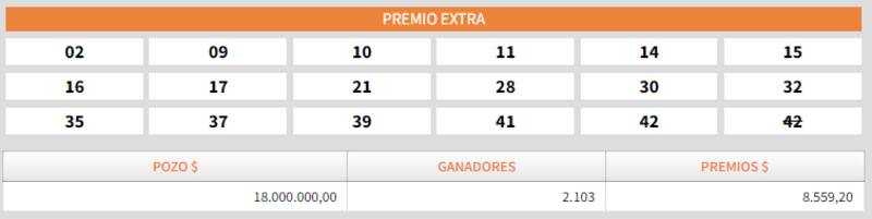 Pozo estimado: $ 85.073.640. Hay dos ganadores con seis aciertos, cada uno se lleva $ 40.000.000. Uno se fue para Palpalá, Jujuy, y el otro para Santa Cruz.