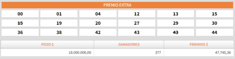 Pozo: $37.075.385. Hay 64 ganadores con cinco aciertos, cada uno se lleva $ 579.302.