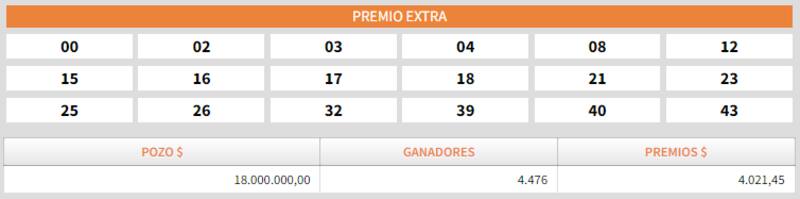 - Sorteo Extra: $ 18.000.000