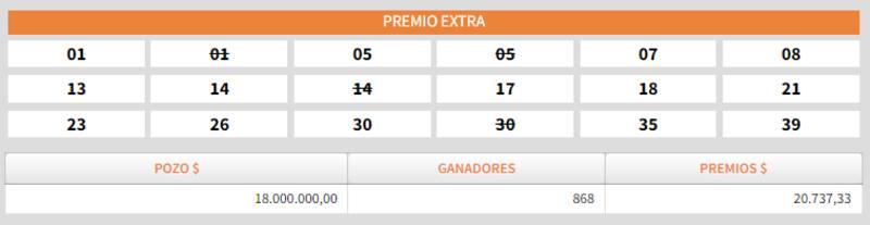 Pozo: $ 38.717.798. Hay 38 ganadores con cinco aciertos y cada uno se lleva $ 1.018.889.