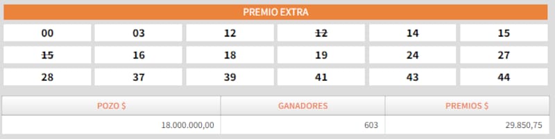 - Sorteo Extra: $ 18.000.000
