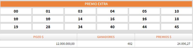 Resultados del Premio extra del quini 6