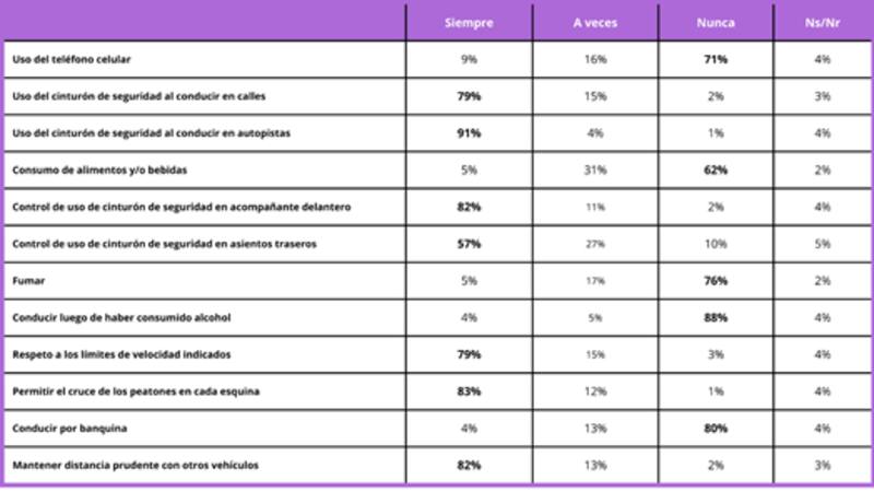 El estudio también abordó algunos datos de las conductas de los usuarios a la hora de conducir.