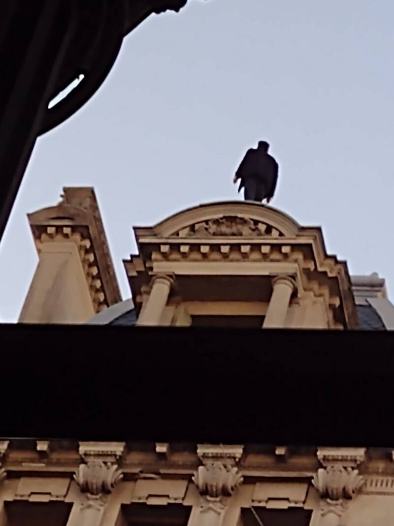 Al parecer el hombre que amenazó con tirarse al vacío sería empleado del Centro Naval, según las primeras averiguaciones realizadas por la Policía de la Ciudad.