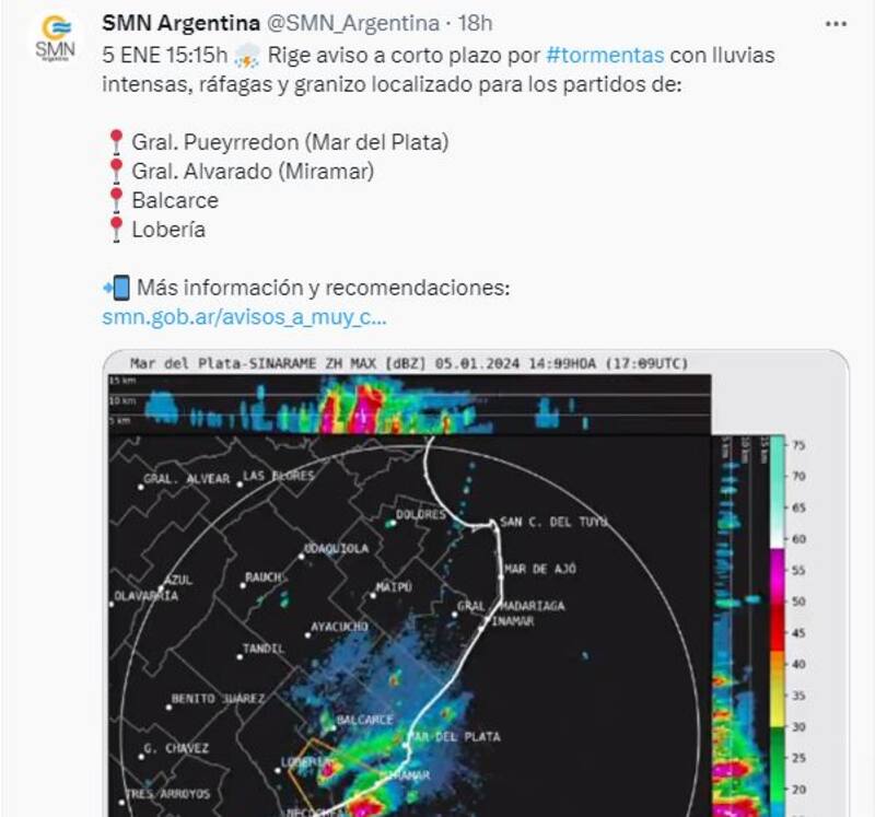 No obstante, el SMN advirtió que en la costa y en el noroeste de la provincia se manifestarán las tormentas desde la madrugada hasta la tarde de este sábado. Asimismo, se estipula que para la noche el diluvio cese, pese a que el firmamento permanecería nublado.