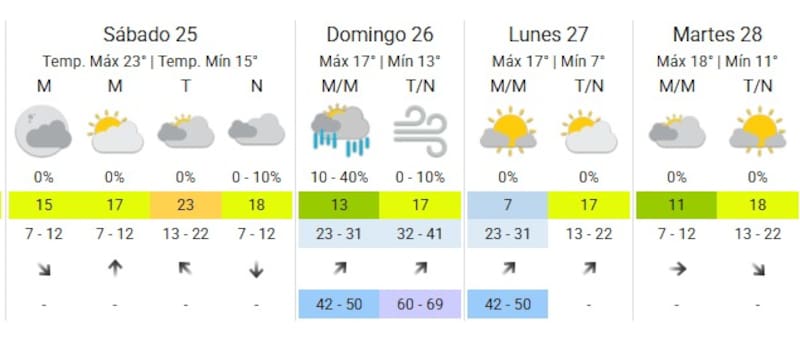 El organismo meteorológico publicó el pronóstico extendido del clima. El fin de semana comenzará con temperaturas de 15° el sábado con cielo parcialmente nublado.
