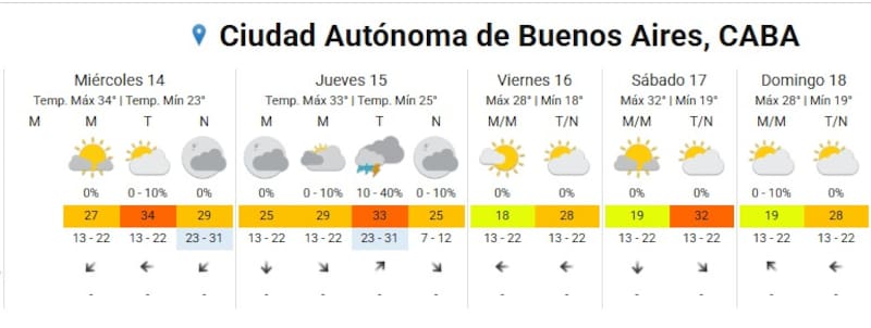 - Sábado 17: mínimas de 19° y máximas de 32°
