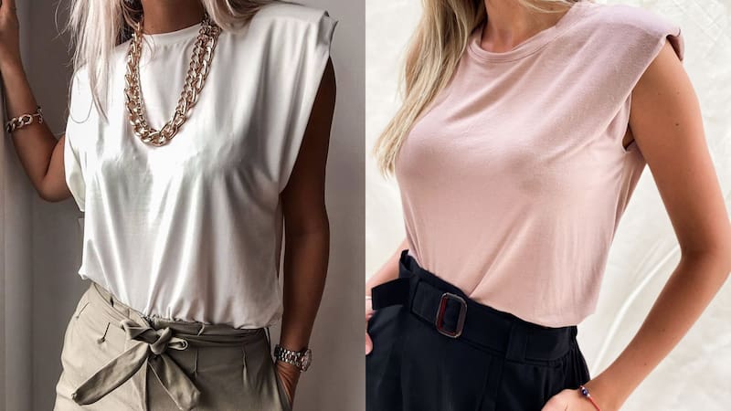 En la misma línea, otra de las tendencias gira en torno a la musculosa con hombreras. Es similar a la musculosa tradicional, solo que el corte de los hombros está un poco más extendido. Puede ser usado de día o de noche y va mejor con pantalones sastreros o bermudas para dar un look moderno.