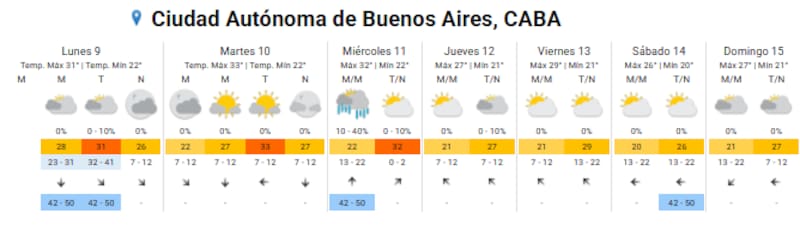 El organismo dio a conocer el pronóstico extendido para la Ciudad Autónoma de Buenos Aires durante los próximos días:
