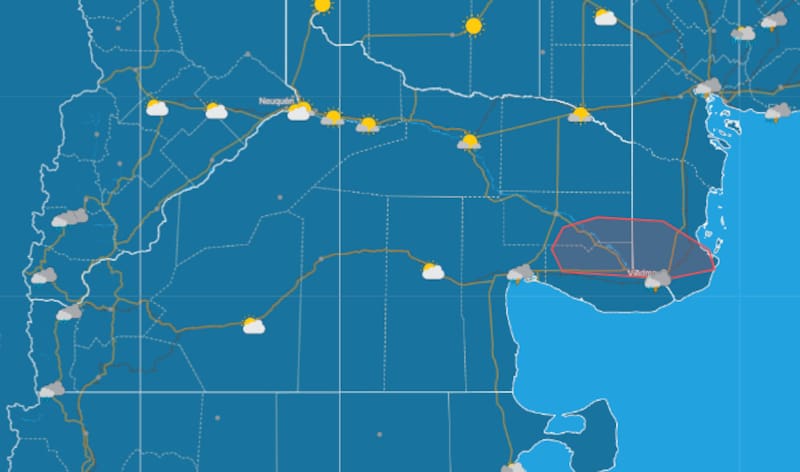 El SMN emitió una alerta por la llegada de un temporal que afectará principalmente al sur de la provincia de Buenos Aires y el este de Río Negro. La tormenta comenzó durante la madrugada de este lunes 9, con vientos del sector sudoeste y abundante caída de agua. Además, en Río Negro se esperan fuertes ráfagas de viento que alcanzarán los 80 km/h el martes a la tarde-noche.