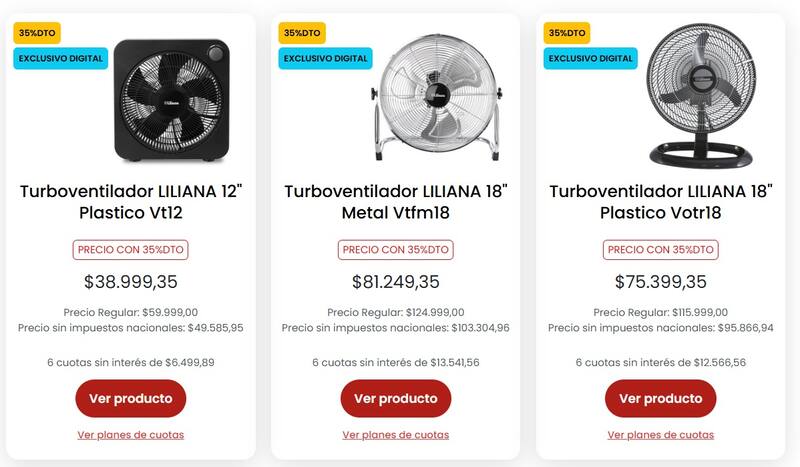 - Turboventilador LILIANA 12 plástico Vt12: 35% OFF - $ 38.999 (Precio regular: $ 59.999)