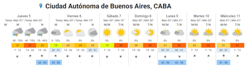 El organismo dio a conocer el pronóstico extendido para la Ciudad Autónoma de Buenos Aires durante los próximos días: