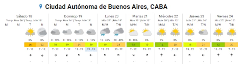 El Servicio Meteorológico Nacional publicó el pronóstico extendido para la Ciudad Autónoma de Buenos Aires:
