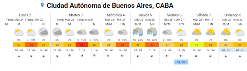 El SMN dio a conocer el pronóstico extendido para la Ciudad Autónoma de Buenos Aires durante los próximos días: