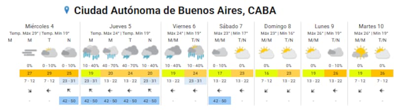 El organismo publicó el pronóstico del tiempo para la Ciudad Autónoma de Buenos Aires: