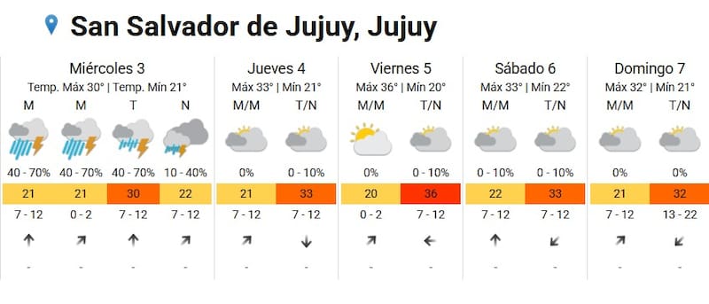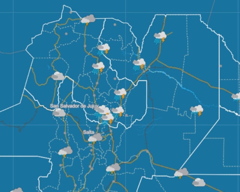 El Servicio Meteorológico informó que la provincia de Jujuy será golpeada por un fuerte temporal. Las intensas lluvias podrían acumular 19 milímetros tan solo durante el martes con una temperatura mínima de 17° y máxima de 25°.