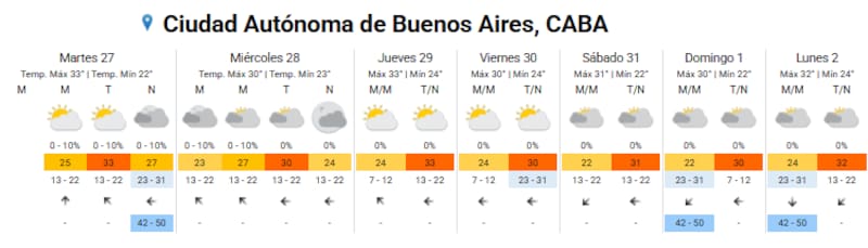 El organismo dio a conocer el pronóstico del tiempo para la Ciudad Autónoma de Buenos Aires durante los próximos días: