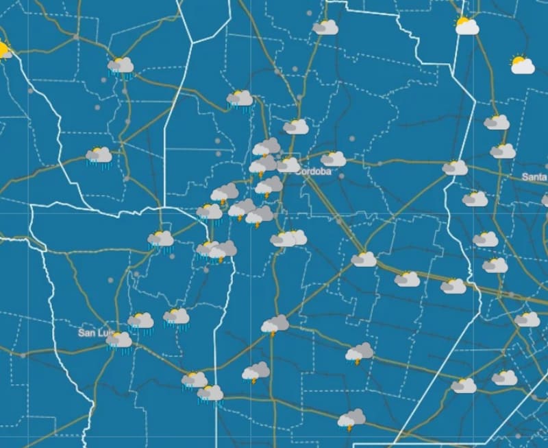 El organismo alertó por el avance de un temporal que afectará principalmente a la provincia de Córdoba y San Luis con caída de agua y vientos de hasta 40 kilómetros por hora.
