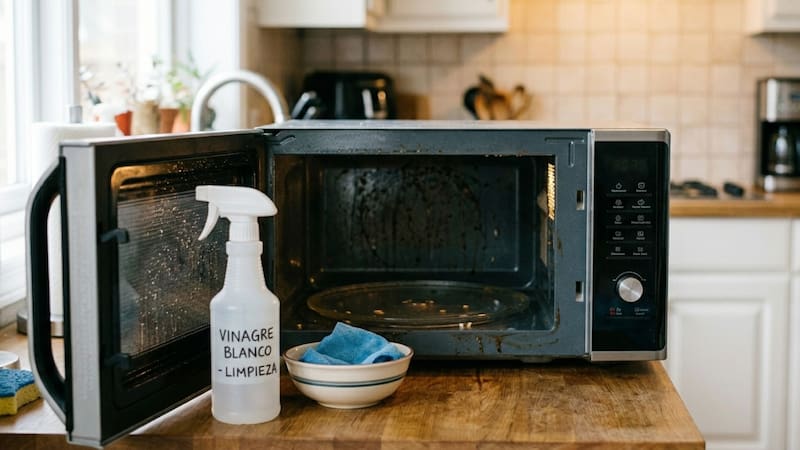 El vinagre es un aliado habitual en la limpieza del hogar por su capacidad para disolver grasa y eliminar bacterias. Al calentarse, genera vapor que penetra en la suciedad adherida y la ablanda, lo que facilita su remoción sin esfuerzo.