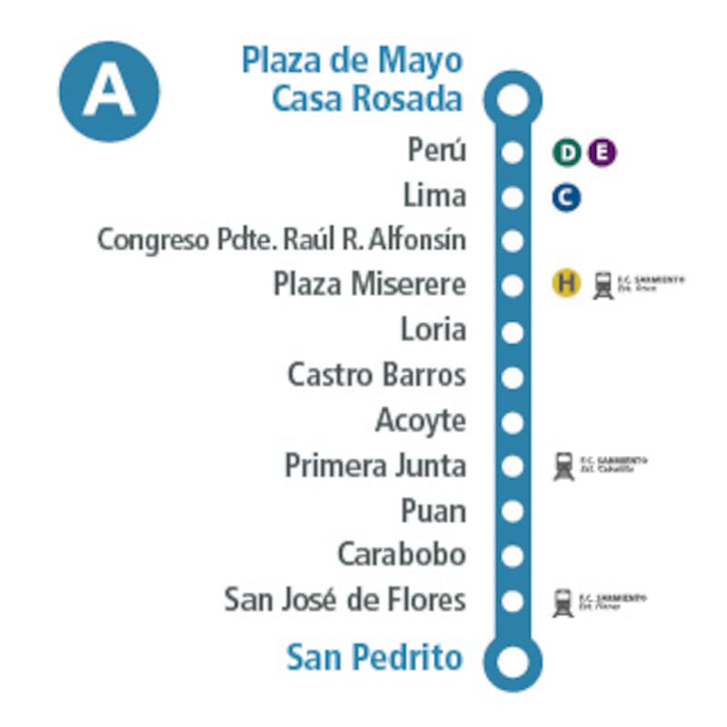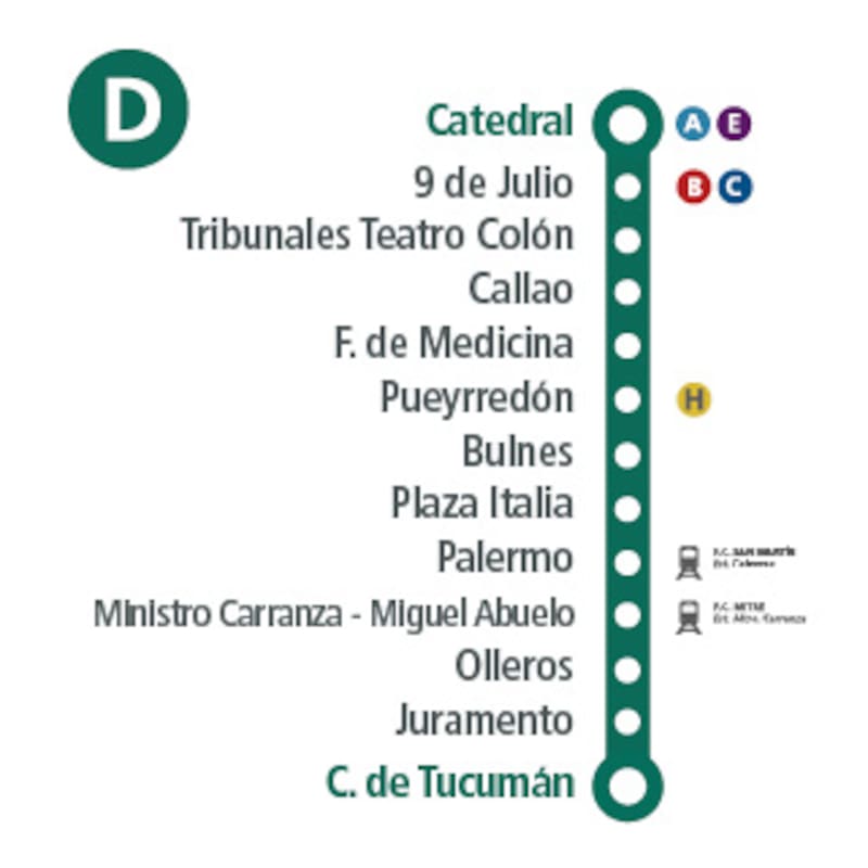 Se trata de las estaciones Río de Janeiro y Piedras (Línea A), Tronador y Echeverría (Línea B), Moreno y San Juan (Línea C), José Hernández (Línea D), Belgrano y Catalinas (Línea E) y Córdoba e Inclán (Línea H).