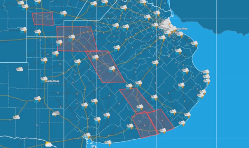 De acuerdo con el Servicio Meteorológico, se esperan tormentas fuertes, con ocasional caída de granizo, ráfagas de viento que podrían alcanzar los 100 km/h y lluvias intensas, con acumulados de hasta 21 milímetros.
