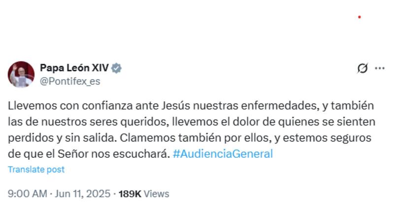 A través de un mensaje publicado en su cuenta oficial de X, el Pontífice instó a los fieles a acercar sus enfermedades y sufrimientos a Cristo, no solo propios, sino también de los seres queridos: