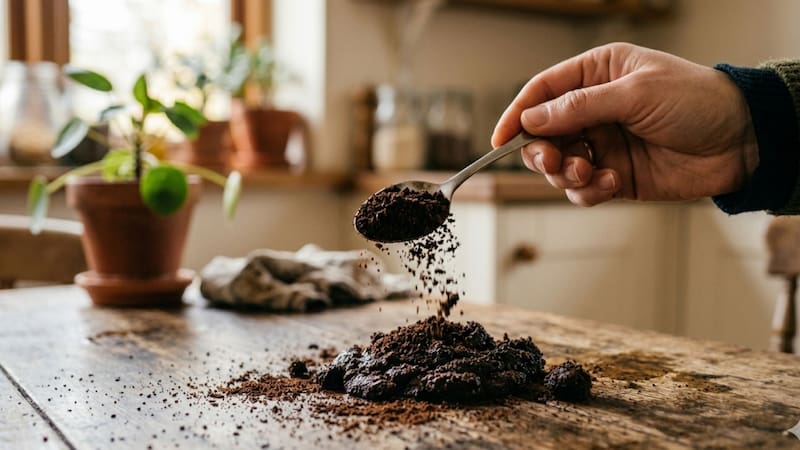 El café usado puede ser un gran aliado para el mantenimiento de muebles de madera, especialmente los de tonos oscuros. Gracias a su color y textura, actúa como un tinte natural que ayuda a disimular rayones superficiales y desgastes producidos por el uso cotidiano.